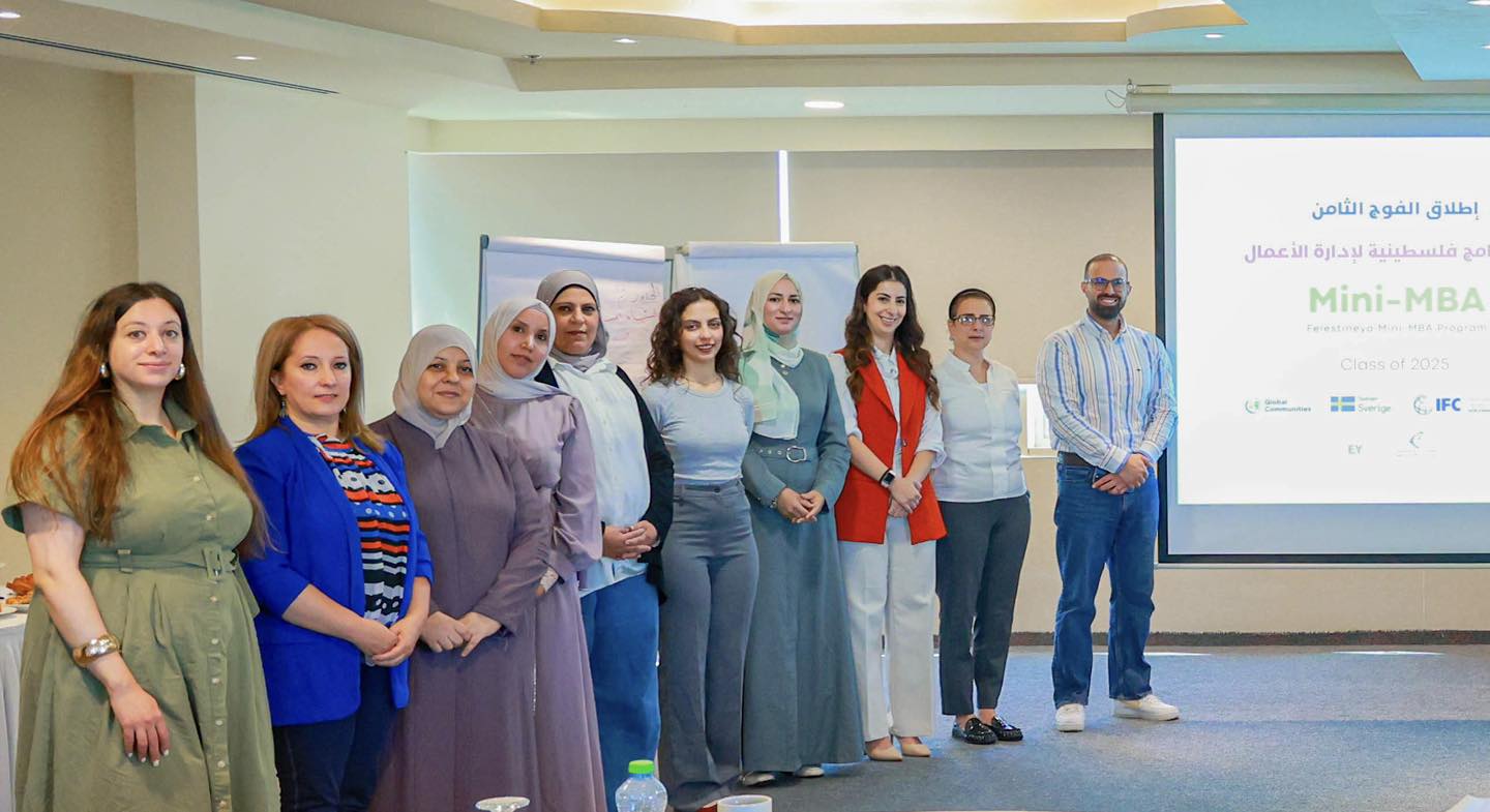بنك فلسطين يطلق الفوج الثامن من برنامج فلسطينية لإدارة الأعمال Mini MBA للرياديات وصاحبات الأعمال أطلق بنك فلسطين الدورة الثامنة من برنامج "فلسطينية لإدارة الأعمال (Mini-MBA)، بالشراكة مع مؤسسة مجتمعات عالمية (Glo...